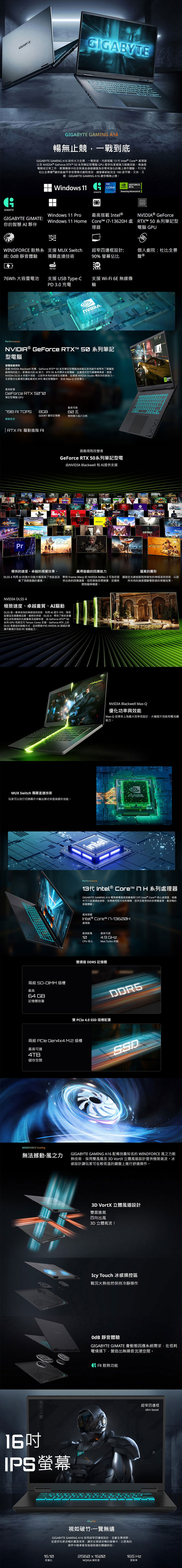 螢幕:16.0“ 16:10 WUXGA (1920x1200) 165Hz IPS Display(Supports MUX Switch)