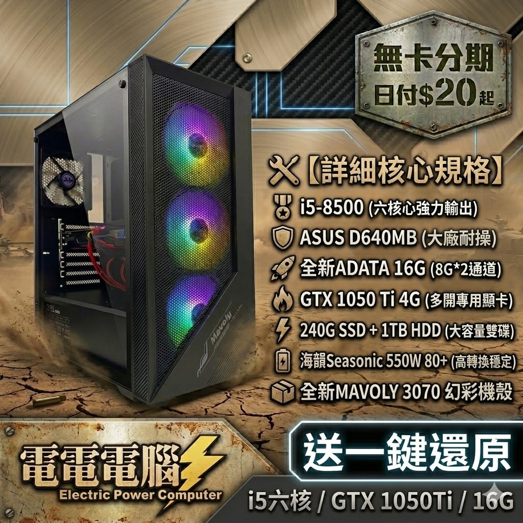 那些年在奇岩城攻城的感動回來了!🔥 《經典天堂》多開掛機、或是玩《楓之谷》、《RO》想邊掛邊看 YouTube? 這台主機配備 i5 六核心 與 16GB 大記憶體,讓您多開視窗依然順暢無比! 🛡️ 【為什麼專業掛機黨都選這台?】 ✅ 強悍六核心 i5-8500:比一般文書機強太多,遊戲多開、系統負荷更輕鬆。 ✅ GTX 1050 Ti 4G 獨顯:經典遊戲特效全開,畫質流暢不掉幀。 ✅ 海韻 Seasonic 電源:內行人最愛的電源品牌,掛機 24 小時最安心的供電保障。 ✅ 雙硬碟配置:SSD 系統秒開 + 1TB HDD 大容量,存照片、存影片、掛多個遊戲通通夠放。 ✅ 全新幻彩機殼:採用 MAVOLY 3070 電競機殼,正面三風扇 RGB 幻彩燈效,視覺效果滿分,散熱效能更是一流! ✨ 【獨家福利機】 正版 Win 11 專業版:系統穩定、安全性高,不用擔心盜版問題。 一鍵還原系統:系統不穩或中毒?按一個鍵自動回歸原廠狀態,免求人。 🔧 【詳細核心規格】 🎖️ 核心:i5-8500 (六核強力輸出) 🛡️ 板子:ASUS 大廠耐操主板 🚀 記憶體:全新 ADATA 16G (雙通道) 🔥 顯卡:GTX 1050 Ti 4G (多開專用) ⚡ 硬碟:240G SSD + 1TB HDD (大容量) 🔋 電源:海韻 550W 80+ (穩定如山) 📦 機殼:全新 MAVOLY 3070 幻彩網孔🛒 【購買聯絡】 👉 二手機 店保一個月 地址:高雄市三民區澄和路39號 電話:(07)3415822 / 0911-883-884 官方 LINE:@377fipfn (記得加@) 👉 支援銀角無卡分期 / 線上刷卡 / 高雄地區面交 👇 多開神機只有一台,現在就私訊了解!