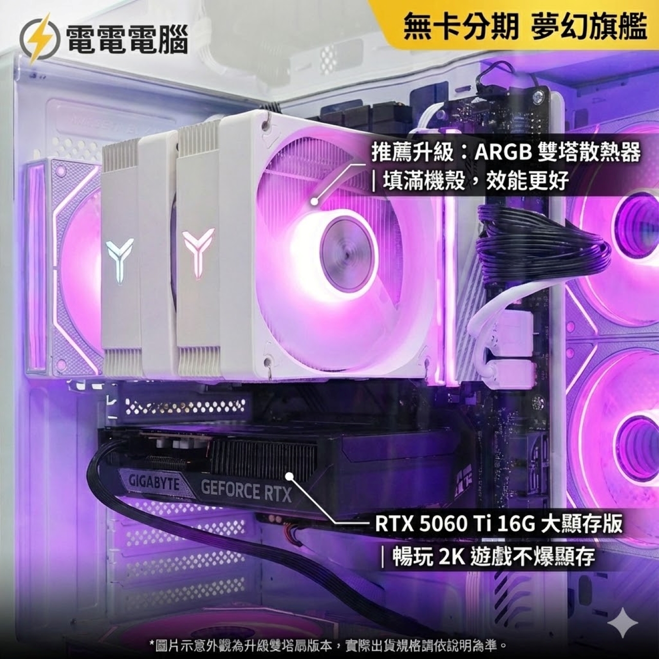 圖片展示為**「加購升級 ARGB 雙塔散熱器」**。