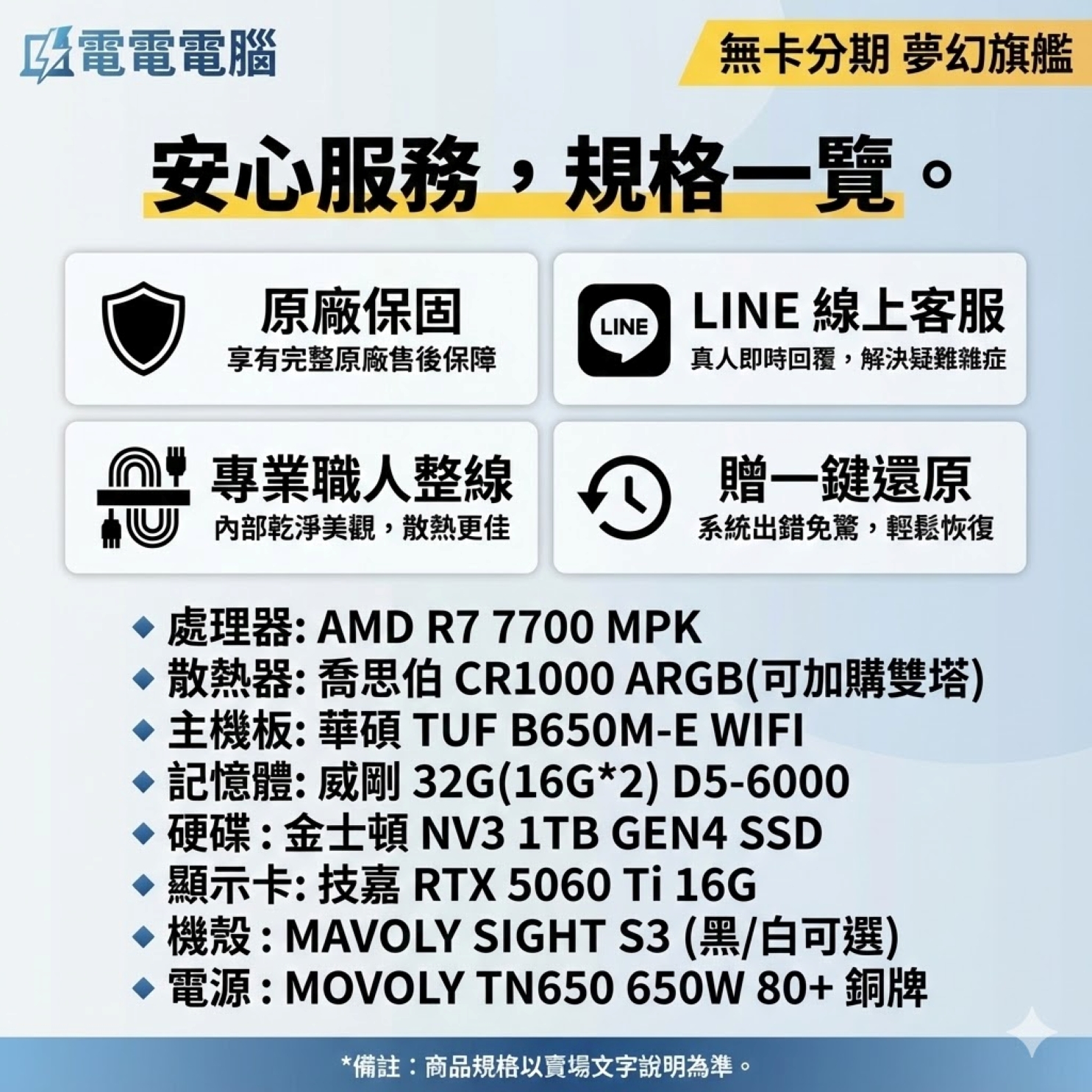 🔹 處理器: AMD R7 7700 MPK (8核心16緒 | 遊戲多工強悍)