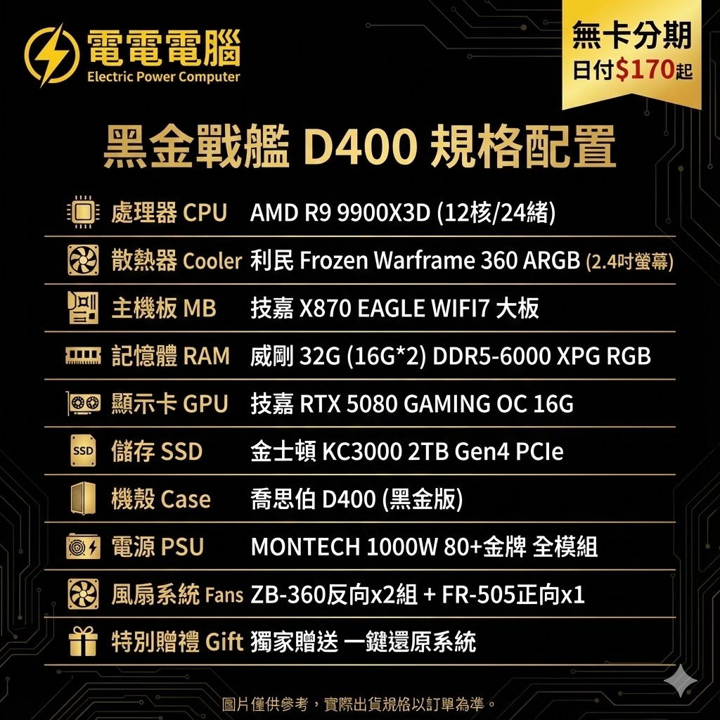 「電電電腦」為您獻上 —— 黑金戰艦 D400 特仕版。